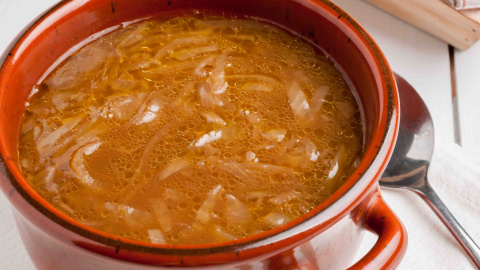 Existen dos maneras de elaborarla. La tradicional francesa es más grasa, pero muy sabrosa: una cocción de caldo de pollo y cebolla caramelizada, bien dorada, con pan y queso gratinados al horno. La receta ligera sería prescindiendo de la mantequilla, el pan y lácteos, y yendo al grano con la esencia de la cebolla.