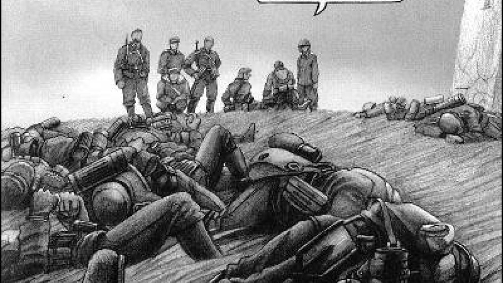 Entre bombas, crueldad y principios desgarrados, parece imposible un resquicio para la humanidad. Jun Matsuura (Barcelona, 1980) quiere creer que sí, que la hay. Este dibujante de padre japonés ha depositado su confianza en el personaje de Joannes Matthäus, un soldado alemán de la II Guerra Mundial destinado al frente del Este, que actúa como un muñeco en manos del ideario nazi y que tendrá que perderlo todo para llegar a una conclusión: tanto el bando alemán como el ruso defienden "la misma mierda", pero con distinto nombre.