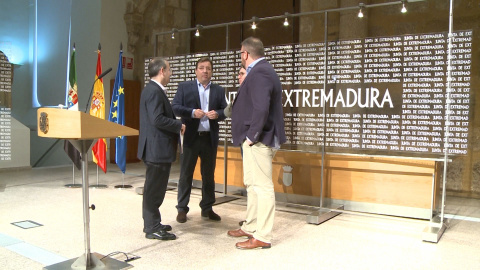Imágenes de la rueda de prensa que han ofrecido el presidente de la Junta de Extremadura, Guillermo Fernández Vara, y el director del Festival de Mérida, Jesús Cimarro, para presentar el balance final de la 64ª edición del Festival Internacional de Teatro Clásico de Mérida.