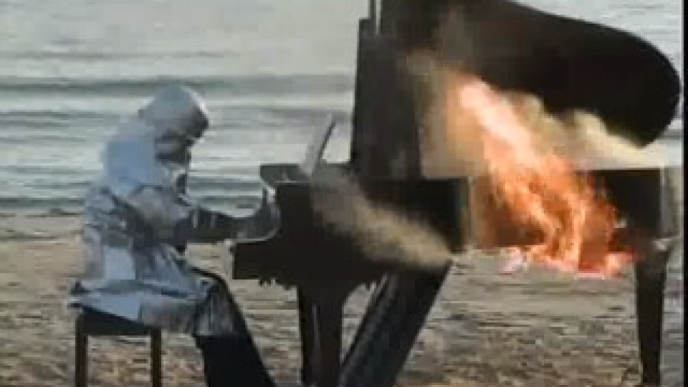 En Ishikawa, en Japón, un músico de jazz japonés expresa su "ardiente" pasión por la música pegándole fuego al piano en el que interpreta alguna pieza. Es el 'pianista incendiario'. Su vestuario consiste en un traje ignífugo y una máscara para poder tocar a pesar del humo que desprenden las llamas. Llevaba 35 años sin hacer una actuación de este tipo. Ahora lo ha repetido en una playa, ante 500 personas. El concierto ha terminado cuando el piano ha dejado de sonar.