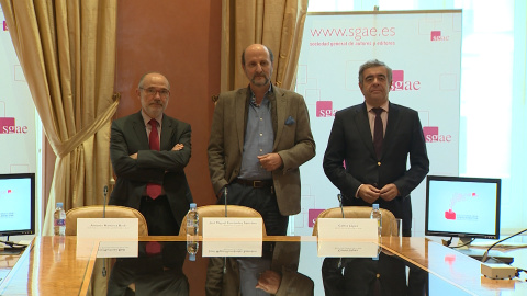 Imágenes de la rueda de prensa de la SGAE en Madrid con motivo del inicio de la campaña electoral para nueva junta directiva.