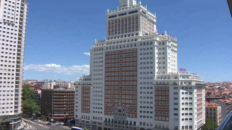 Imágenes de la vista aérea de algunos edificios emblemáticos de Madrid, como el Palacio Real o Plaza España.