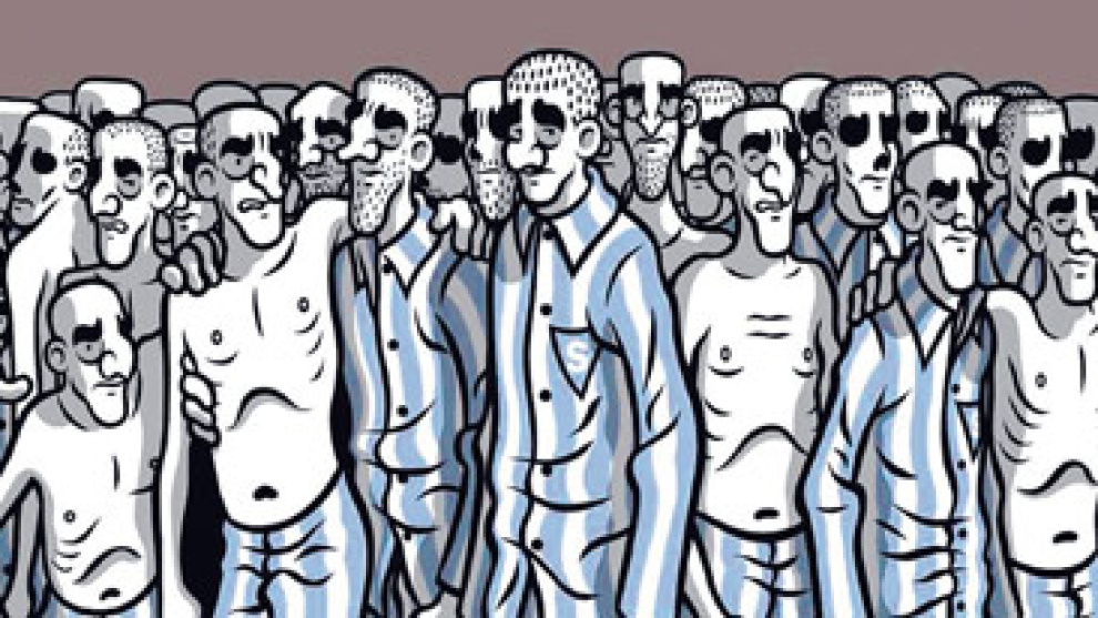 Más que palos y porrasLa atracción por las pesadillas del campo de concentración de los españoles empezó hace años, cuando en 2008 recorría bancos buscando una beca para poder "hacer un álbum a la altura de mi sueño". Necesitaba viajar al lugar y documentarse. Lo consiguió y pensó en una trilogía. De momento, ya se ha publicado la primera parte, Un buen hombre (Glènat), una aproximación a los aledaños del campo, la vida de los SS y los efectos de la propaganda. Prisionero es la segunda parte y la última entrega estará ambientada en el campo francés de Argelès-sur-Mer. "Mis obras tratan siempre de recordar los errores del pasado", abrevia.