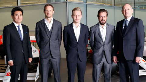 Después de un lustro de sinsabores en Ferrari, el asturiano emprende una nueva aventura ansioso por buscar su tercer Mundial, tras los logrados en 2005 2006 con Renault, con el novedoso proyecto de McLaren, que estrenará las nuevas unidades de potencia de Honda, repitiendo la combinación que llevo a Ayrton Senna a tres campeonatos. A las 11:30 en punto de la mañana, la web de McLaren lanzaba el comunicado oficial: "McLaren-Honda se complace en anunciarles que Fernando Alonso y Jenson Button serán nuestros nuevos pilotos para 2015. Kevin Magnussen seguirá siendo una pieza clave del equipo, como piloto de pruebas y de reserva".