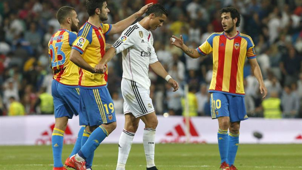 André Gomes primero, con una gran jugada personal, y Gayá y Alcácer después, amenazando con repetir el primer gol, recordaban a los blancos que el Valencia no mostraría reparos en sentenciar, aunque el conjunto blanco era el más predispuesto a marcar, sobre todo a base de carreras de la 'BCC' y jugadas a balón parado que un Alves pletórico continuaba frenando.