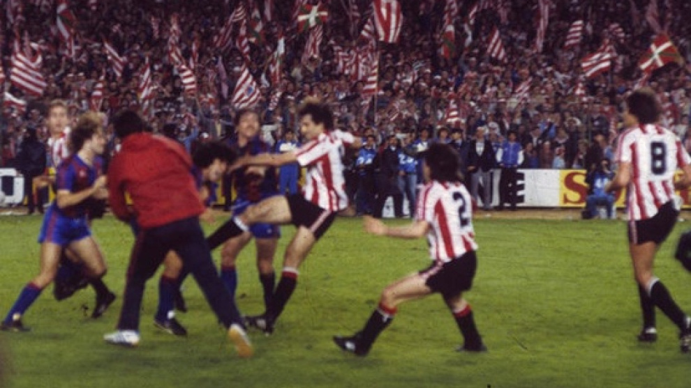 MADRID.- Esta historia retrocede 31 años atrás, a una noche de mayo de 1984 cruel para el Barça, maravillosa para el Athletic hasta que el árbitro pitó el final. Entonces los futbolistas se liaron a patadas y hasta la Policía tuvo que intervenir entre ellos. Carrasco, el extremo del Barça, tenía 25 años y todavía sigue pidiendo perdón. “Ojalá nunca más se repita una final tan bélica y agresiva. El fútbol no está hecho para eso”. “Fue algo que, afortunadamente, no se repitió más”, añade Dani, que era el capitán del Athletic.