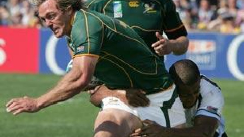 Por su parte, la selección sudafricana de rugby también selló el billete para semifinales al vencer a Fiyi por 37-20, en un partido donde los africanos dejaron patente su superioridad durante la mayor parte del encuentro. El partido no comenzó bien para los sudafricanos, ya que una de sus máximas estrellas, Percy Montgomery erró una pena máxima.