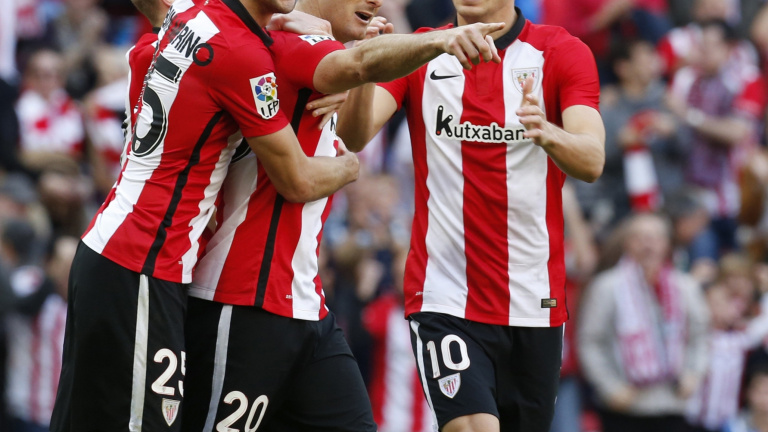 El equipo bilbaíno remontó el gol inicial de los visitantes y terminó goleando (5-2) al equipo armero. Aduriz, con un doblete, suma ya 13 goles en liga. Completaron la cuenta goleadora Merino, Laporte y Dos Santos, en propia puerta, para los locales, y Borja Bastón, para el Eibar.