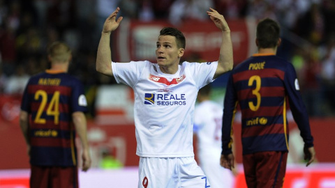 MADRID.- El Atlético de Madrid ha confirmado este sábado la llegada del delantero francés Kevin Gameiro, que firmará para las próximas cuatro temporadas tras el reconocimiento médico al que se someterá esta tarde en Madrid. Gameiro, delantero francés de 29 años, ha disputado las últimas tres campañas con el Sevilla, donde ha anotado 67 goles en 138 partidos oficiales con los hispalenses. Antes jugó en el París Saint Germain (dos temporadas entre 2011 y 2013), el Lorient (tres campañas desde 2008 a 2011) y el Estrasburgo (entre 2005 y 2008).