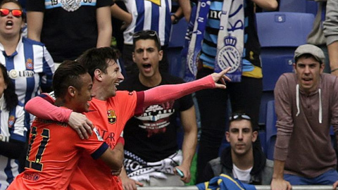 BARCELONA.- Dos goles en una buena primera parte, uno de Neymar y otro de Leo Messi, han permitido al Barça sumar la victoria en el campo del Espanyol (0-2), en uno de los partidos más complicados que le quedaban como visitante en este final de temporada.
