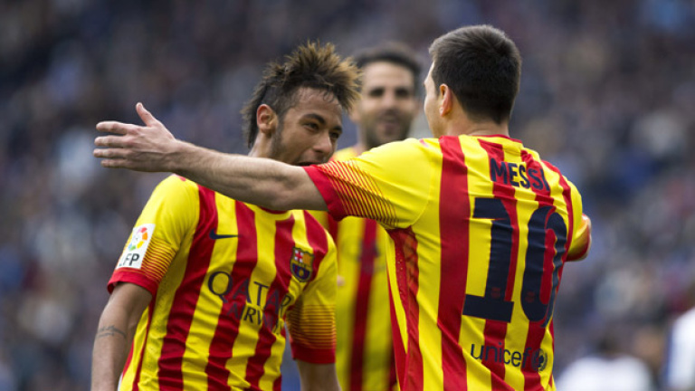 Messi avisó el primero y Piqué remató al travesaño a la salida de un córner antes de que Clos Gómez señalara, esta vez sí, penalti por manos de Javi López, en una jugada en la que previamente parece que el balón también daba en el brazo de Neymar.