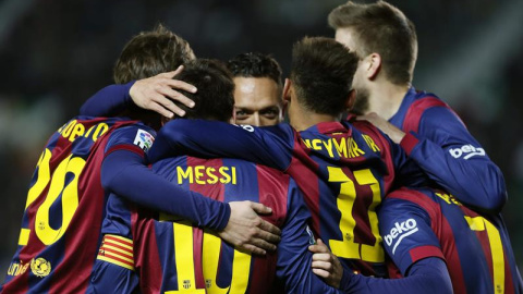Tal y como sucedió hace poco más de una semana en la Copa, el Barcelona, sin Alves, Suárez, Iniesta y Busquets en su alineación, volvió a arrasar al Elche, si bien esta victoria fue más laboriosa, aunque quedó adornada al final por la sociedad Messi-Neymar.