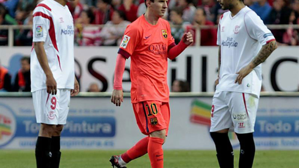 Con seis cambios en el once que ganó 4-0 al Almería al volver el lesionado Jordi Alba, el sancionado Sergi Busquets y los reservados Piqué, Mathieu, Iniesta y Neymar en lugar de Bartra, Mascherano, Adriano, Xavi, Sergi Roberto y Pedro, el Barça llegaba a un Pizjuán totalmente lleno con recelo por el poderío del Sevilla en casa, pero con la presión de tener que ganar por el triunfo del Real Madrid.