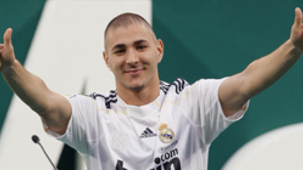 El delantero francoargelino Karim Benzema ha sido presentado en el estadio Santiago Bernabéu como el cuarto fichaje de la nueva etapa de Florentino Pérez al frente del Real Madrid, en un acto en el que estuvo también acompañado por el presidente de honor de la entidad, Alfredo Di Stefano, pero en el que aún no pudo lucir el que será su dorsal en su nuevo periplo como jugador blanco.