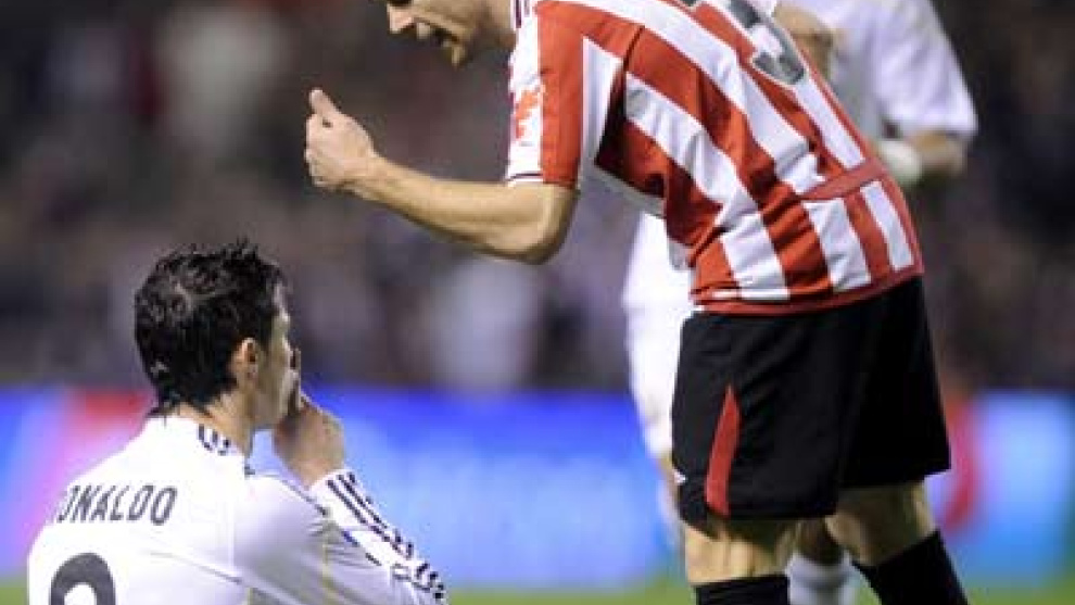 Con el balón de por medio, Cristiano Ronaldo sólo sufrió tres faltas en San Mamés. Y, sin embargo, su partido fue otra vez una crónica de sucesos, llena de combates dialécticos con jugadores rivales y de un rugido constante en su contra desde la grada. El portugués acabó fuera de sí: amagó con lanzar un pelotazo contra un aficionado que le increpaba, soportó las collejas y los reproches de Koikili cada vez que se iba al suelo, luego de Iraizoz, más tarde otra bronca con San José... El Athletic encontró un arma en buscarle las cosquillas al futbolista más costoso del planeta, que siempre entró al trapo. El Madrid tiene un problema. Cristiano insiste en que le estimula ese clima contrario que encuentra allá donde va, pero las imágenes enseñan que tanta provocación le saca a menudo de los partidos.