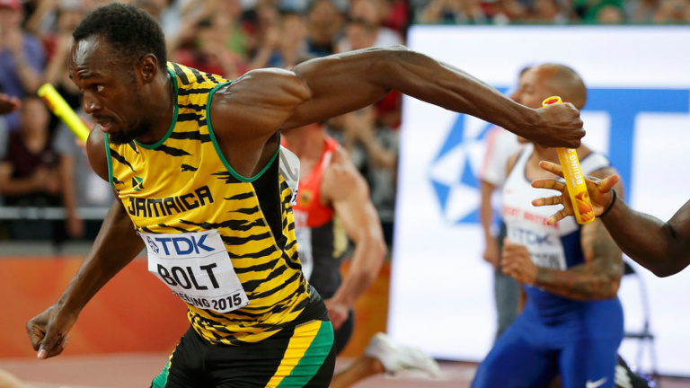 PEKÍN.- Usain Bolt, campeón del mundo individual de 100 y 200 metros, remató el triplete dorado en los Mundiales de Pekín como último relevista del equipo de Jamaica, otra vez ganador, ahora con una marca de 37.36, frente a un cuarteto estadounidense que al final resultó descalificado.