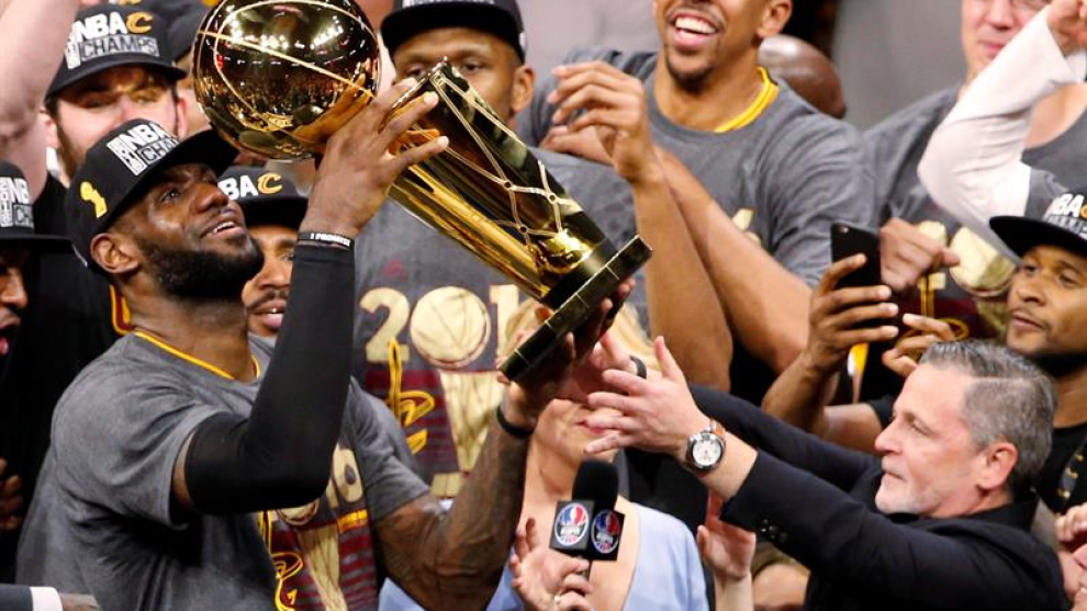 El conjunto de Cleveland remontó una serie que perdía 1-3 y conquista el anillo de campeones, después de ganar a Golden State en el séptimo y definitivo partido de la serie (89-93). LeBron James, que fue nombrado MVP de las finales, y sumó a la victoria visitante un triple-doble de 27 puntos, 11 rebotes y 11 asistencias