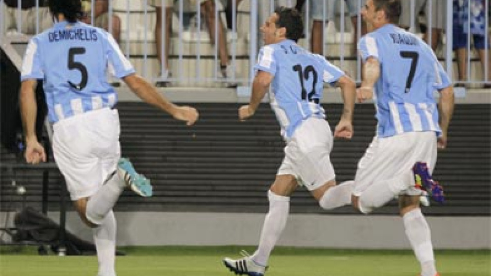 El equipo malagueño salió con un esquema diferente al empleado en Sevilla, con el centrocampista portugués Sergio Paulo Barbosa Duda, haciendo de conductor del juego por Apoño, fuera del once por decisión técnica y con un solo delantero, ya que e venezolano Salomón Rondón fue reemplazado por el rápido y habilidoso media punta argentino Diego Bounanotte.