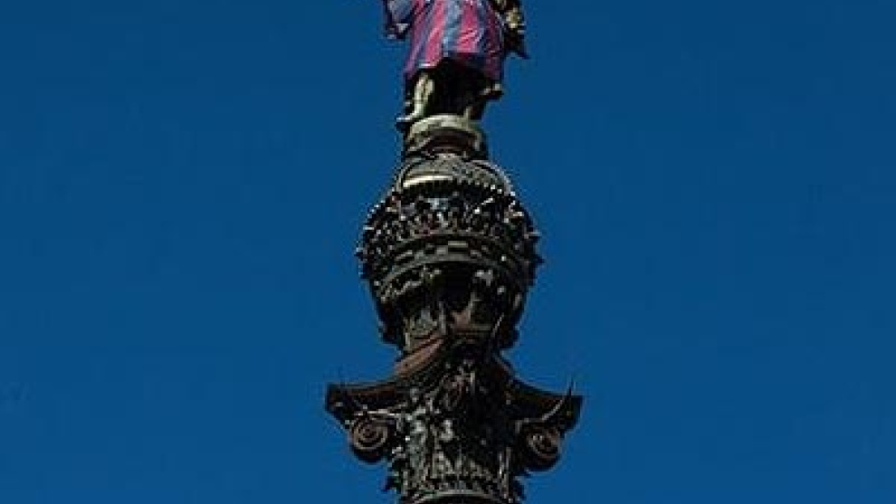 Retiran la polémica camiseta del FC Barcelona de la estatua de Colón situada en la ciudad condal. Lo recaudado por la acción publicitaria se destinará a asociaciones benéficas