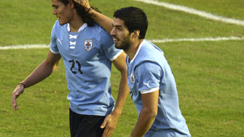 Luis Suárez y Cavani, la pareja de delanteros de Uruguay, se disputan ser el próximo 'nueve' del Madrid, donde sólo hay sitio para uno