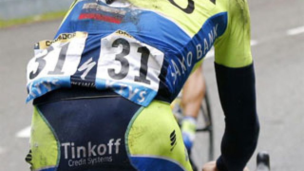 Contador se había caído en el descenso del Petit Ballon, puerto de primera categoría, segunda dificultad montañosa de una jornada que cuenta con siete ascensos, incluida la dura subida a La Planches des Belles Filles. Tras pasar varios minutos sobre el asfalto atendido por los servicios médicos de la carrera, el madrileño partió con unos cinco minutos de retraso en la general con un vendaje en la rodilla.