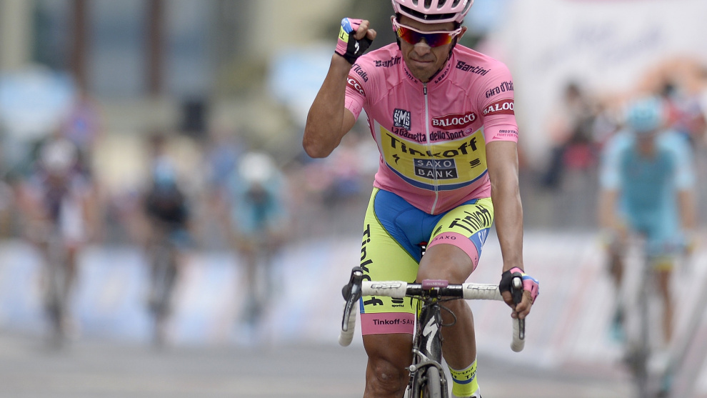 El español Alberto Contador pasó momentos de profunda crisis en la penúltima etapa, camino de la cima de Finestre, pero salvó sin ayuda la maglia rosa y este domingo, de no mediar un accidente, conquistará en Milán su segundo Giro de Italia.