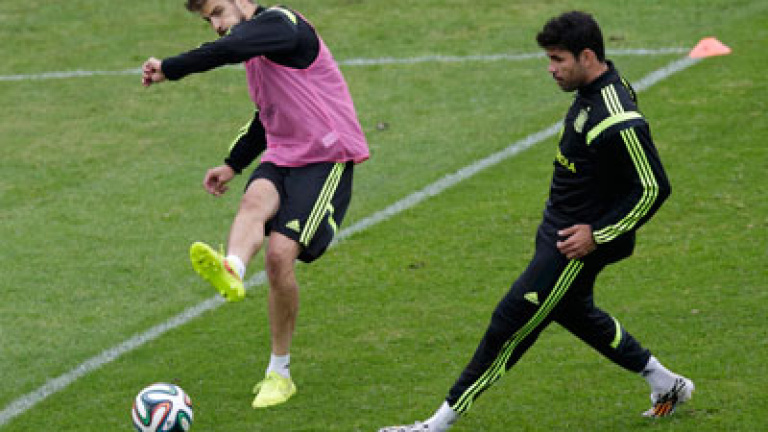Vicente del Bosque ha optado por un nueve puro como el ariete del Atlético, en lugar del 'nueve falso' que había estado utilizando antes de la nacionalización de Costa. Estará flanqueado por Andrés Iniesta a la derecha y por David Silva a la izquierda. La buena actuación del canario en el amistoso del pasado sábado ante El Salvador, cuando salió del banquillo y cambió la cara al partido, le ha valido para partir de inicio ante la selección entrenada por Louis Van Gaal.