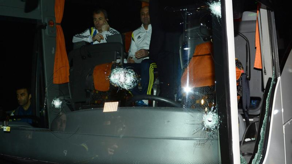 El autobús que llevaba hacia el aeropuerto de Trabisonda a los jugadores del Fenerbahce fue atacado con disparos en la noche del pasado día 4, cuando el equipo volvía de un partido de la Superliga turca en el que venció por 5-1 al club local Çaykur Rizespor.