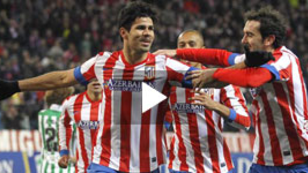 Un gol del brasileño Diego Costa, a los cinco minutos de su entrada en el terreno de juego, solucionó la vigésima victoria consecutiva del Atlético de Madrid en el estadio Vicente Calderón, la decimonovena de esta temporada, y doblegó al Betis, en una jornada redonda para el conjunto rojiblanco.