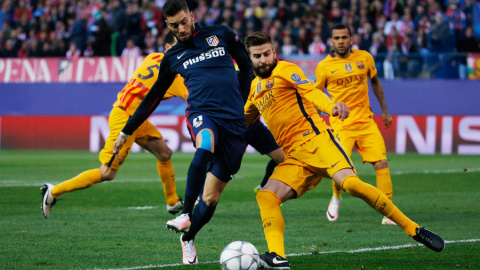Carrasco y Piqué, en un momento del partido en el Calderón. Reuters / Sergio Pérez