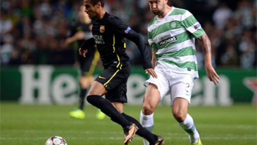 MINUTO 43: Amarilla para Lustig, el lateral derecho del Celtic, por una clara entrada por detrás sobre Neymar. Enfilaba el brasileño hacia el área.