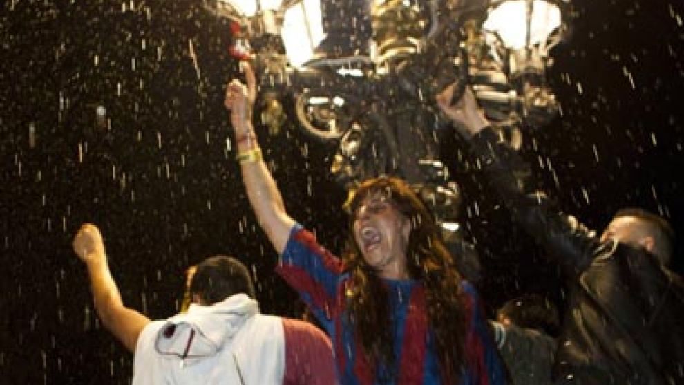 La misma noche del miércoles unos 2.500 aficionados culés se concentraron en Canaletes para celebrar el triunfo azulgrana. Los seguidores lanzaron bengalas y petardos y algunos se encaramaron a las farolas y treparon a lo más alto de la fuente.