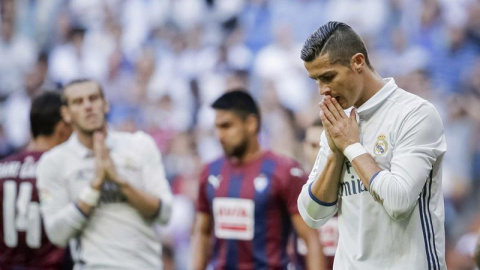 La mejoría física de Cristiano no era acompañada por acierto rematador. Cerró el primer acto con un testarazo desviado a centro de Bale. Y en la reanudación tuvo un puñado de ocasiones en remates y una falta al borde del área. El encuentro entraba en una velocidad endiablada que no le interesaba al Eibar. Castigaría la aparición de espacios y la falta de solidaridad defensiva, con Pedro León provocando los gritos de auxilio de Pepe a los de arriba, cuando de nuevo encontraba una autopista en el carril de Danilo, superado, pero chutaba blando a Keylor.