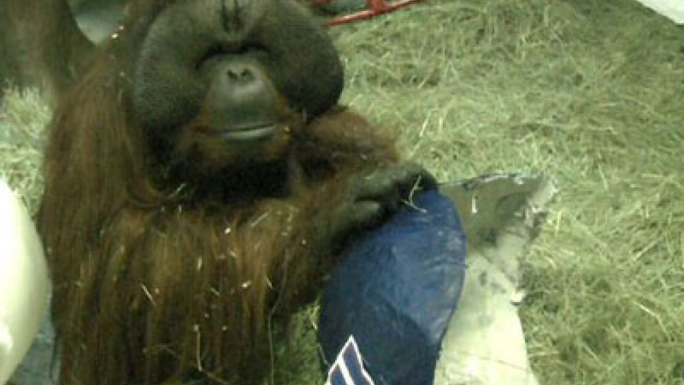 Todo oráculo tiene su ritual y, si el cefalópodo era tentado en el acuario con cebos de mejillón colocados en dos urnas iguales con las banderas de las selecciones que se enfrentaban, a Eli se le da a elegir entre dos cascos que imitan los de los jugadores de fútbol americano, hechos de papel maché con los colores de los finalistas. Gana el equipo del primer casco que toca el orangután. Ésa ha sido la norma los últimos años. Y ya van seis.