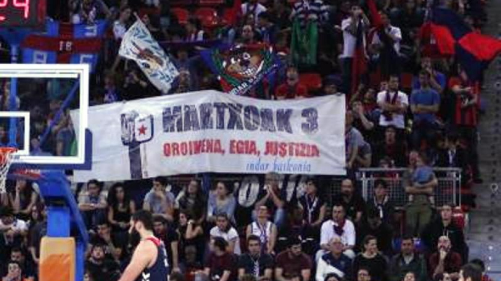 BILBAO-. Los aficionados del Baskonia, un histórico equipo de baloncesto alavés, difícilmente podrán olvidar el derbi del pasado 6 de marzo contra el Bilbao Basket. Esta vez no será el resultado lo que quedará en su memoria, sino la actuación policial contra dos integrantes de la peña “Indar Baskonia” que ejercieron, precisamente, la memoria. ¿El motivo? Desplegar una pancarta en homenaje a las víctimas de la masacre policial del 3 de marzo de 1976 en Vitoria, cuando cinco trabajadores fueron asesinados por la Policía. ¿La acusación? Nada más y nada menos que violar la ley que previene los actos de violencia en espectáculos deportivos.