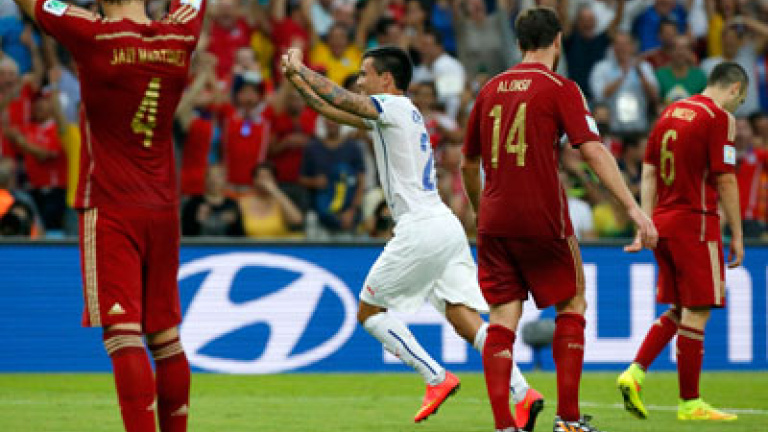 La selección española de Vicente del Bosque encadenó dos derrotas consecutivas por primera vez tras caer ante Chile (0-2) en la segunda jornada de la fase de grupos del Mundial de Brasil, algo que no había ocurrido en los seis años y 89 partidos del salmantino como técnico. En los dos últimos grandes torneos, España empezó con derrota ante Suiza (1-0) en el Mundial 2010 y con empate frente a Italia (1-1) en la primera cita de la Eurocopa 2012.