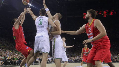 Marc Gasol fue el responsable de un parcial de 9-0 que fue metiendo a España en el partido. A dos minutos del final del tercer cuarto, los de Scariolo (61-52) se acercaron a nueve puntos. Los lituanos, que perderían este parcial por 25-15, se cargaban de personales.