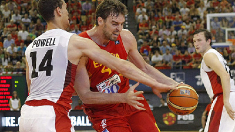 Con un parcial de 4-0 gracias al acierto de Marc Gasol, que anotó los seis primeros puntos de la selección, España marcó la pauta ante Canadá, que intuía lo que se le venía encima a pesar de la baja de Rudy Fernández, por un esguince.