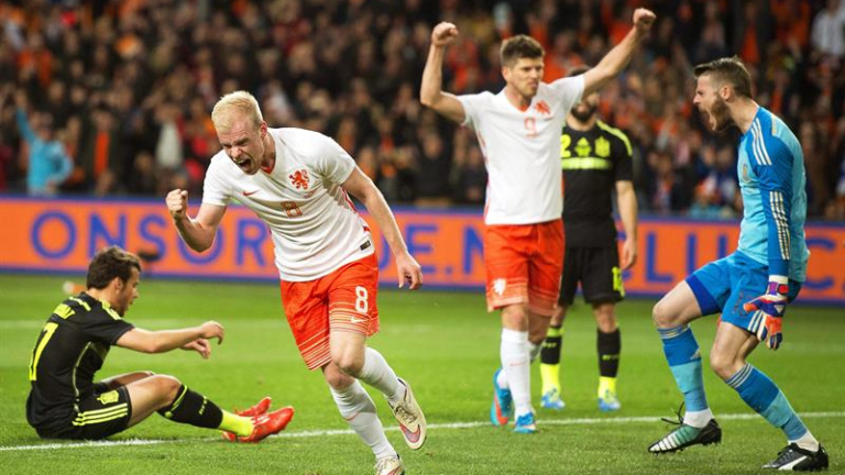 Primero fue Sneijder, experto en castigar a España, quién metió un caramelo en el corazón del área para que De Vrij -con la cabeza- batiese a De Gea con violencia. Un pequeño despiste que empinó la cuesta por las hechuras del rival -tercero en el Mundial de Brasil- como por la entidad del escenario.