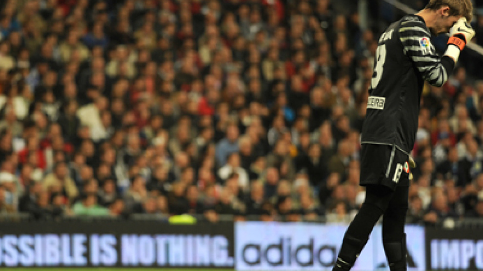"Está leyendo peor el juego aéreo", reflexiona Carlos Aguiar, el primer entrenador específico de porteros que tuvo la Liga BBVA. "A veces, para no equivocarse, ni sale", añade Aguiar, aunque reparte errores: "También está menos arropado por los deterioros defensivos".