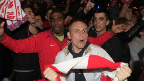 Doce aficionados de nacionalidad española fueron detenidos la noche del viernes, durante las celebraciones de la victoria del Atlético de Madrid en la Copa del Rey, según informaron fuentes de la Jefatura Superior de Policía.