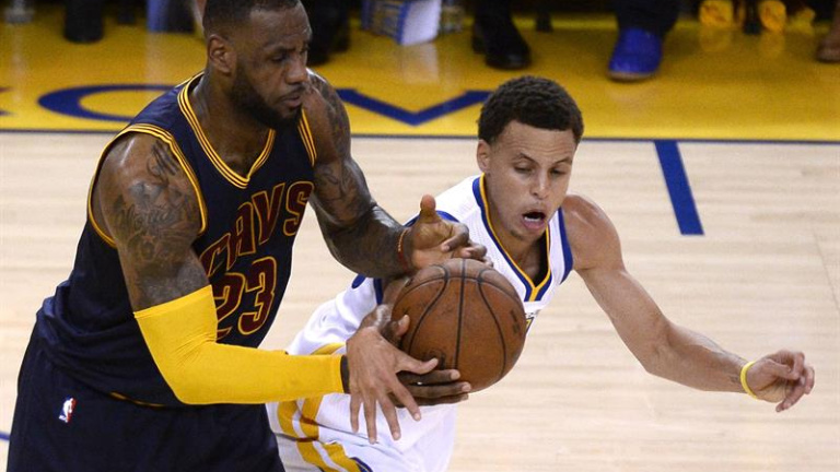 Stephen Curry pugna opr el balón con Lebron James.- EFE
