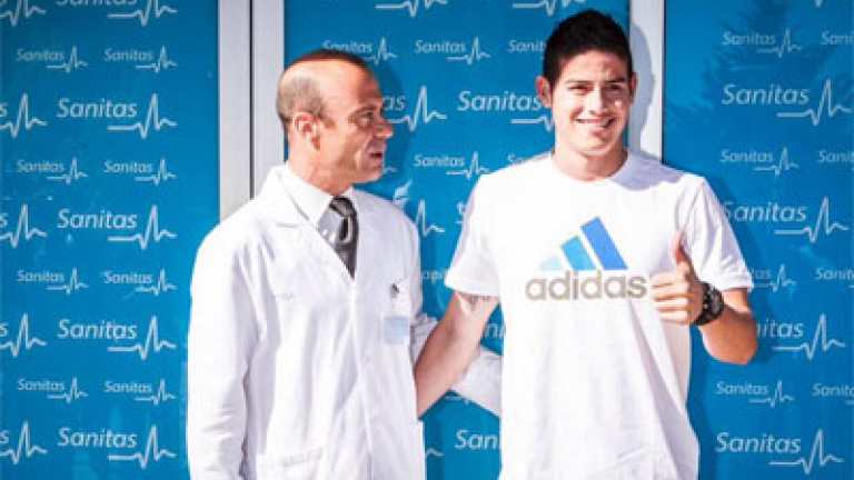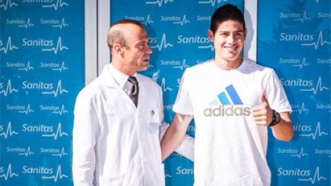 James se encuentra desde ayer en la capital de España, a la que llegó desde Portugal acompañado por su representante, Jorge Mendes. Esta mañana ya ha pasado reconocimiento médico en la clínica Sanitas La Moraleja. El doctor Carlos Díez, director de los servicios médicos del Madrid, ha supervisado el reconocimiento del máximo goleador del pasado Mundial de Brasil, que posó al llegar a la clínica.
