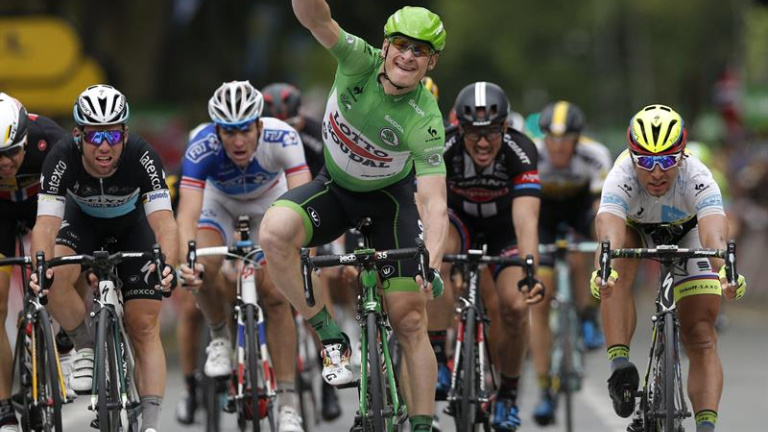 El alemán, que suma ya dos triunfos en esta edición, marcó los tiempos a la perfección y se impuso en la línea de meta de Amiens a Peter Sagan y Mark Cavendish. Una caída de cerca de 30 corredores a 20 kilómetros de la llegada alteró el transcurso de la etapa.