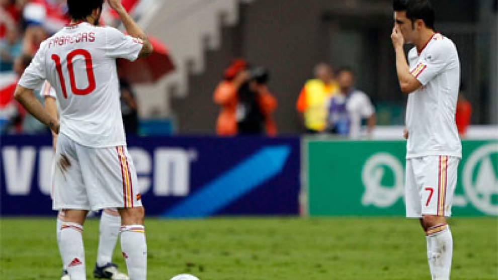 En seguida se vio que a España no le iba a resultar fácil sacudirse la presión de una correosa Costa Rica, para quien su enfrentamiento con la campeona del mundo era una fiesta nacional. Entre la caraja colectiva, posiblemente debida al jet-lag, y que el campo se fue poco a poco levantando hasta convertirse en un patatal, el caso es que La Roja no lograba hilvanar tres pases seguidos. Después de un par de avisos de los costarricentes, llegó el descosido de Casillas y el gol de Brenes. La reacción de España fue más impulsiva que convincente y se acercó a la portería de Navas, aunque a trompicones, con hasta tres ocasiones más o menos francas de Cesc en boca de gol. Campbell, que demostró por qué le ha fichado Wenger para el Arsenal, se sacó de la manga un zurdazo que sorprendió a Casillas.