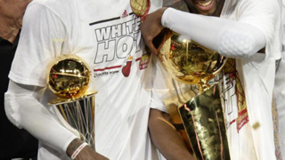 Los Heat de Miami con su triunfo por 95-88 ante los Spurs de San Antonio en el séptimo partido de las Finales de la NBA ganaron 4-3 la serie y revalidaron el título de campeones después de que el año pasado también se impusieron 4-1 a los Thunder de Oklahoma City. El nuevo título, el primero lo ganaron en el 2005-06 y el segundo la pasada temporada, les permite entrar en la lista de los equipos de elite de la NBA que han logrado más de dos anillos y tienen la posibilidad de formar una dinastía.