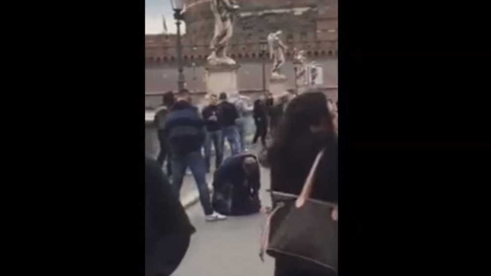 Pues bien, este viernes ha salido a la luz un vídeo en el que un aficionado del Sparta de Praga se pone a orinar justo encima de una señora que pedía limosna en el puente que desemboca en el Castillo Sant'Angelo, en Roma.