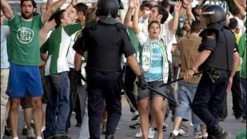 Además también se registraron incidentes en la calle Tajo, en las inmediaciones del campo verdiblanco, donde la policía también tuvo que actuar para controlar a numerosos aficionados.