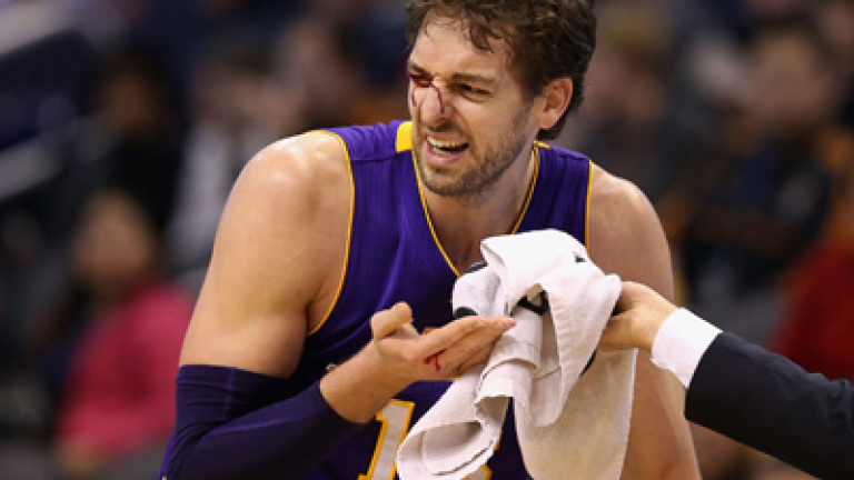 El español, que se había perdido el anterior partido por una infección respiratoria, se abre la ceja. Los Lakers pierden 117-90 en Phoenix