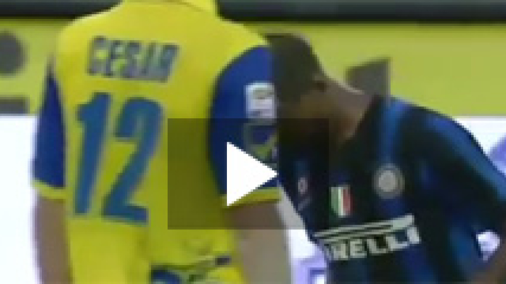 Además el Inter centró el foco de todas las miradas al protagonizar el momento más tenso de la jornada, cuando en el minuto 36 el delantero Samuel Eto'o propinó al defensa del Chievo César un fuerte cabezazo en el pecho que le derribó.